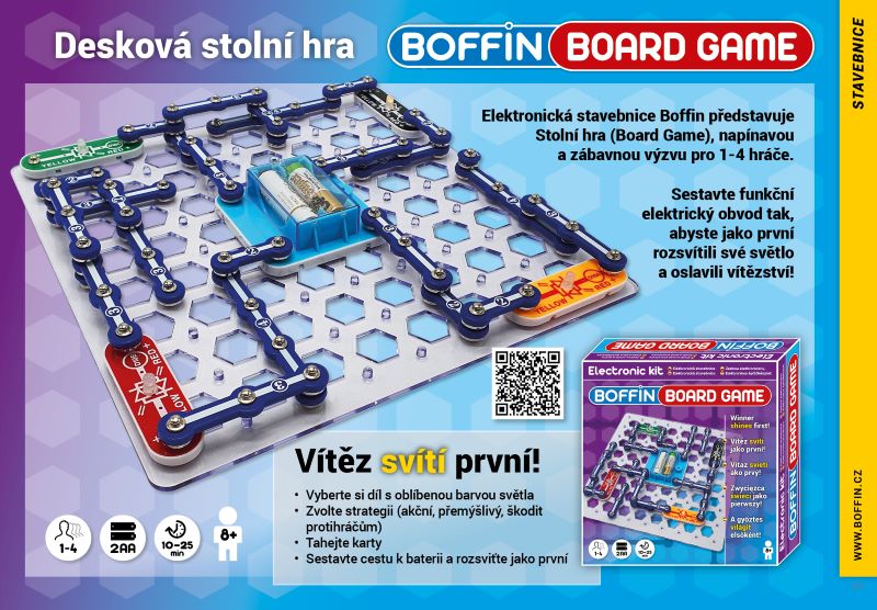 Elektronická stavebnice Boffin představuje deskovou hru (Board Game), napínavou a zábavnou výzvu pro 1-4 hráče.